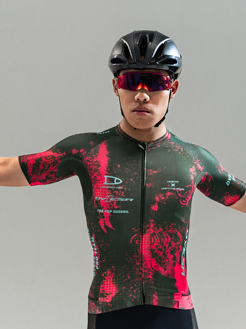 面料介绍:袖子:意大利经编3D网,四向伸展,优越的吸湿排汗性,轻质透气。保证车手长距离训练过程中汗液排出,特殊面料的快干性加强了舒适度且不失压缩性能。后背+侧片:意大利透气网眼,优越的吸湿排汗性,保证车手长距离训练过程中汗液排出,特殊面料的快干性加强了舒适度且不失压缩性能。