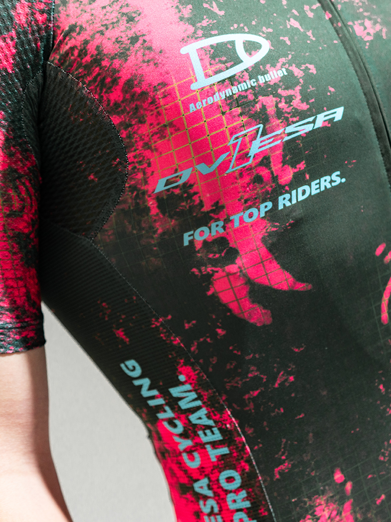 袖子:意大利经编3D网,四向伸展,优越的吸湿排汗性,轻质透气。保证车手长距离训练过程中汗液排出,特殊面料的快干性加强了舒适度且不失压缩性能。