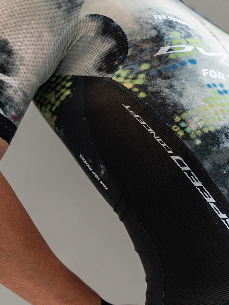 袖子:意大利经编3D网,四向伸展,优越的吸湿排汗性,轻质透气。保证车手长距离训练过程中汗液排出,特殊面料的快干性加强了舒适度且不失压缩性能。