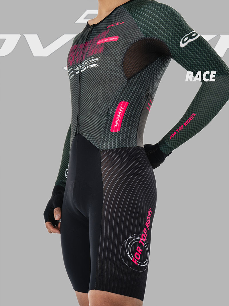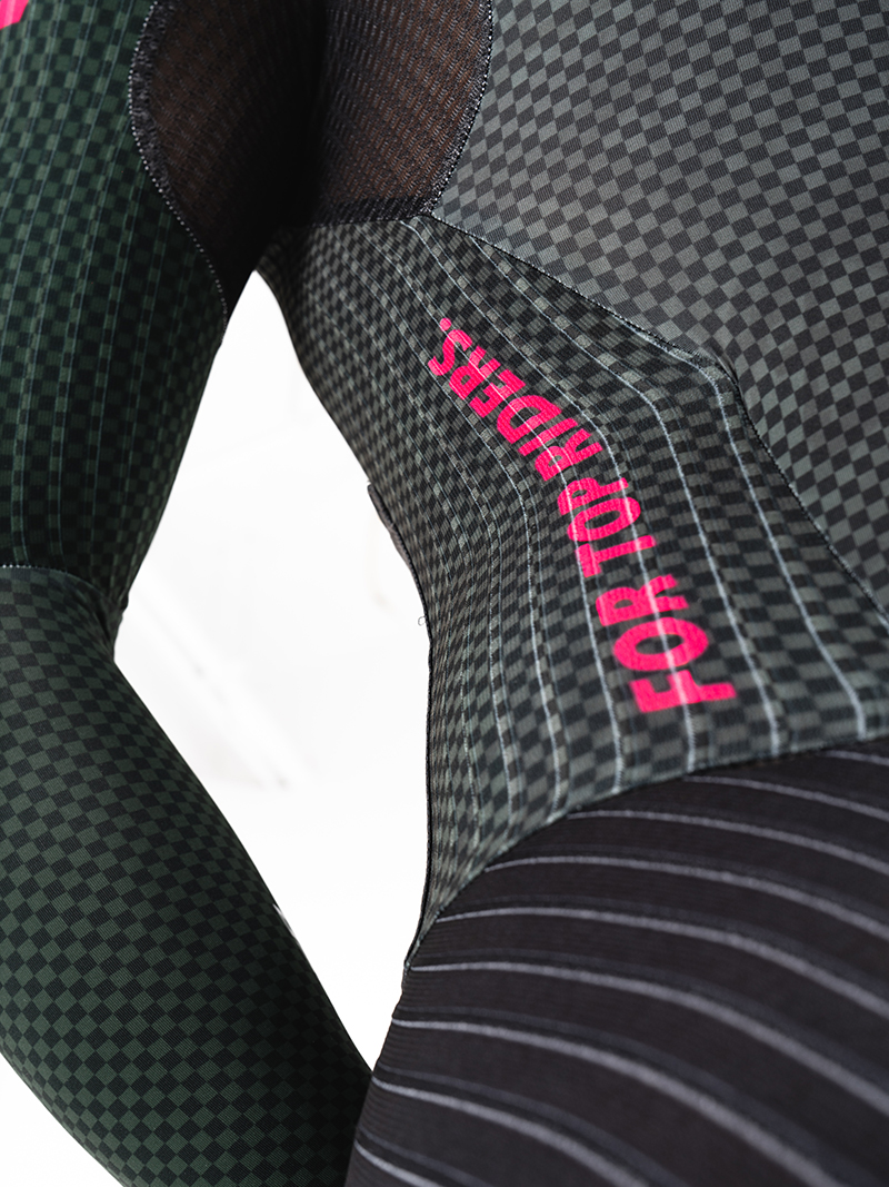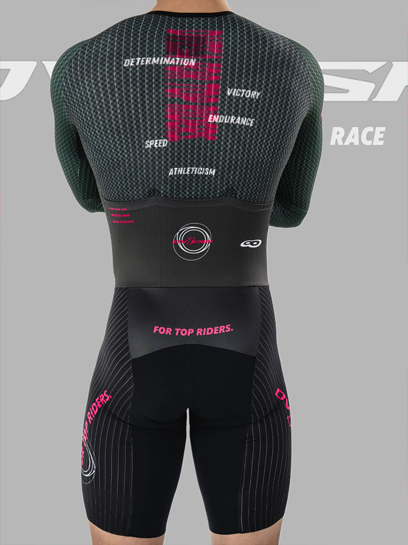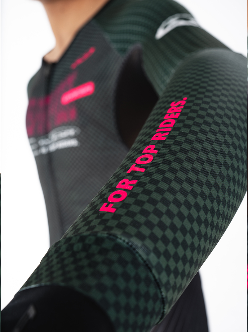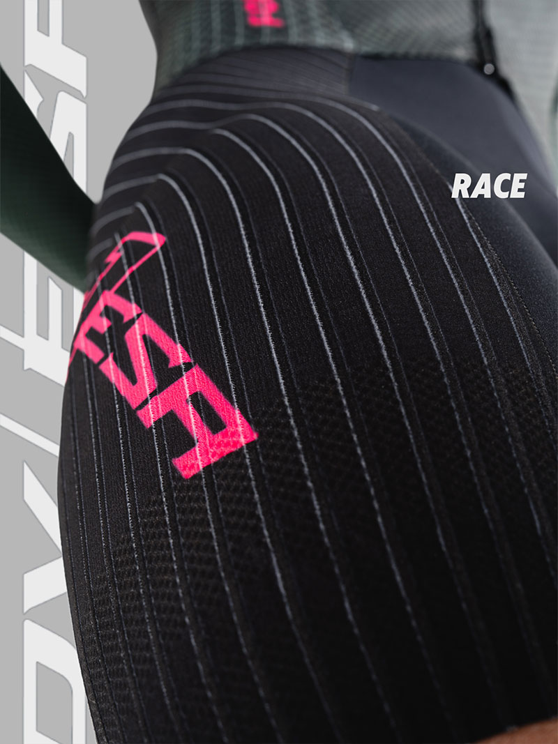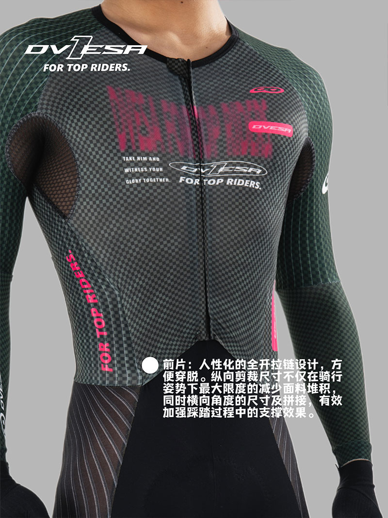 裤子:法国高性能科技面料,卓越的贴合度和舒适感,超强的压缩性提升支撑效果,搭配意大利条纹压缩面料,在保证腿部包裹感的同时,使得整体更加气动,并符合空气流动性,从而减少风阻。给运动中肌肉带来辅助效果,缓解疲劳。从而实现高效。