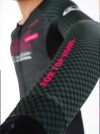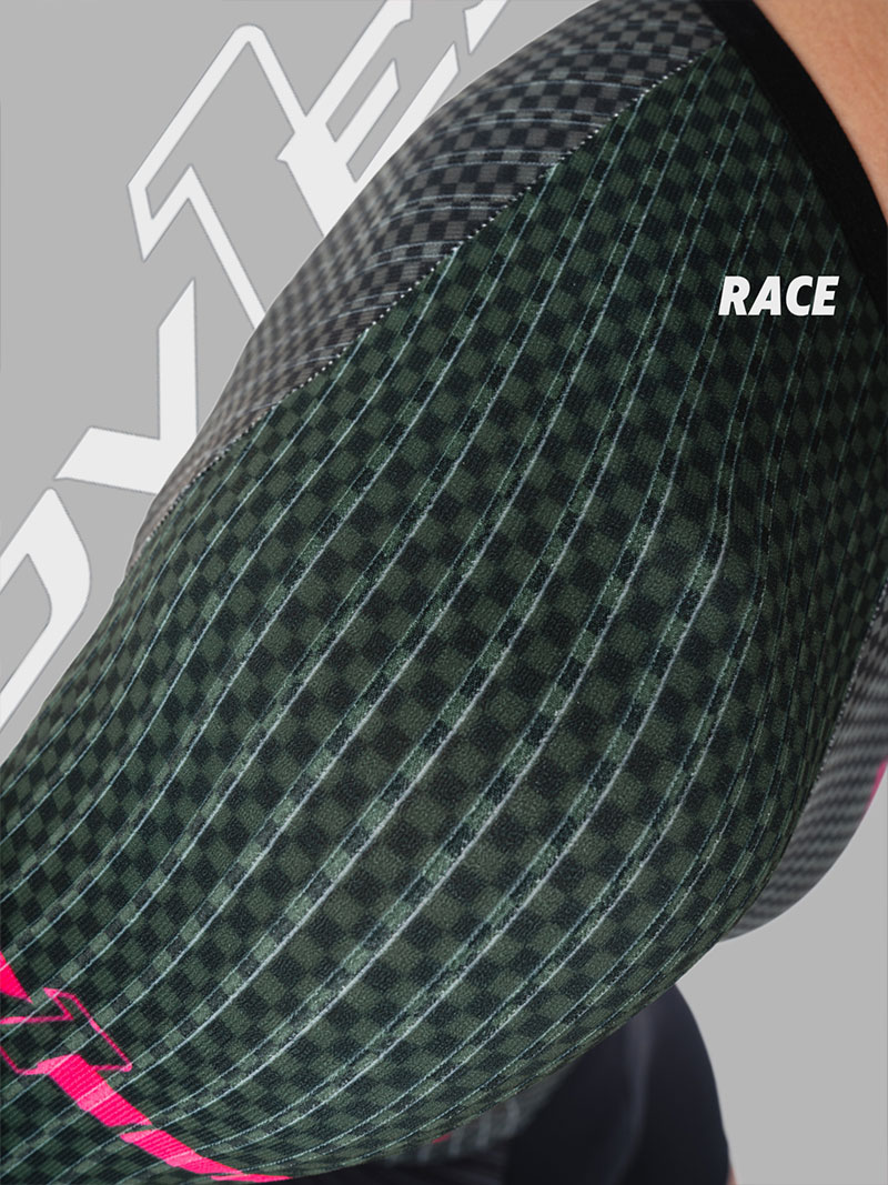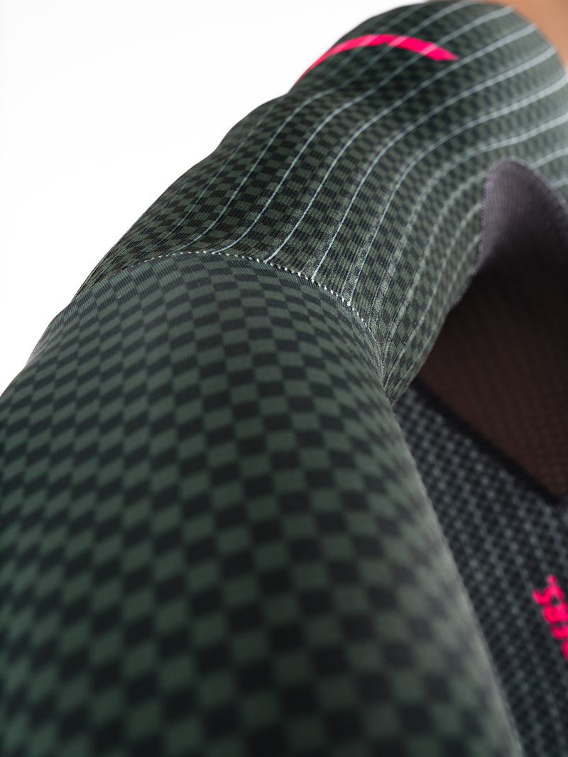 袖子后背侧片:意大利条纹压缩面料,具有超强的弹性及压缩性,优越的回弹性最大限度的突出面料功能。其部位突出的竖条纹结构,搭配更高效空气动力学剪裁,有效降低功率输出,符合空气流动性。极致气动。保证了车手在骑行中的绝佳表现,让您更快。