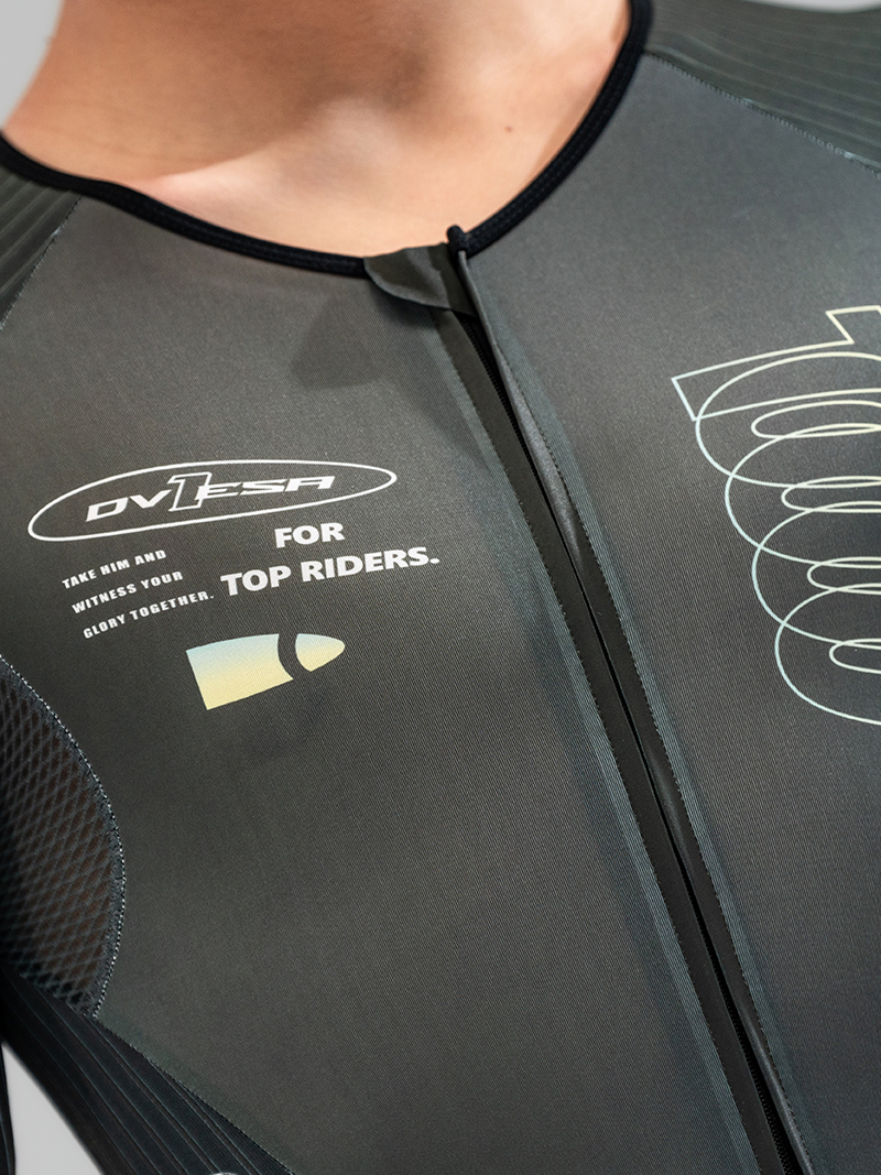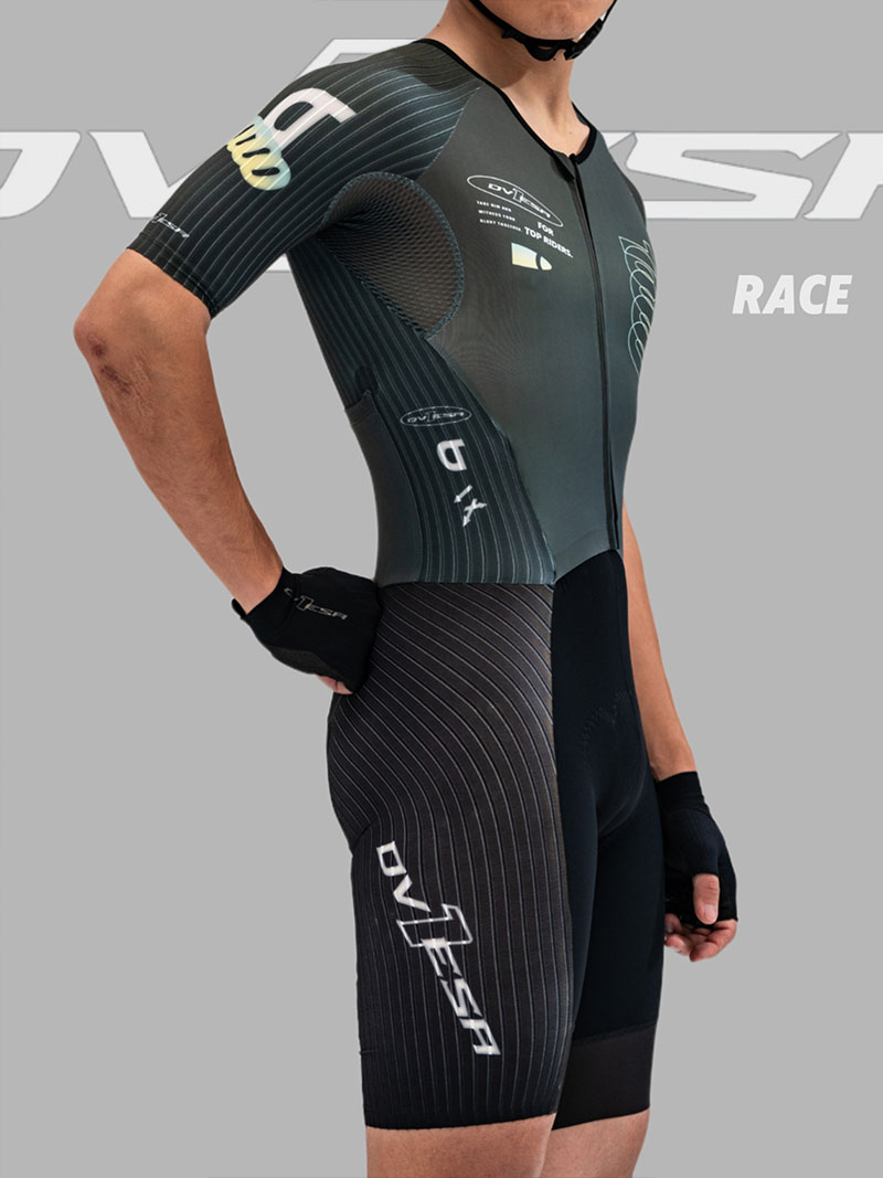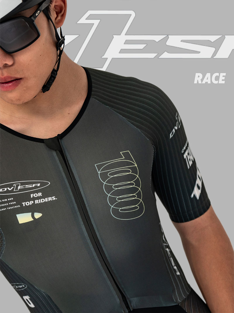 裤子:法国高性能科技面料,卓越的贴合度和舒适感,超强的压缩性提升支撑效果,搭配意大利条纹压缩面料,在保证腿部包裹感的同时,使得整体更加气动,并符合空气流动性,从而减少风阻。给运动中肌肉带来辅助效果,缓解疲劳。从而实现高效。