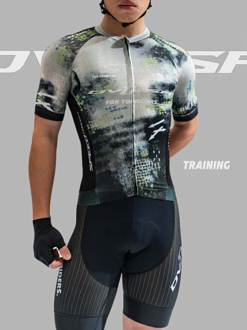 版型介绍:为了最大限度的保证骑行姿势的舒适性,对腰部的剪裁进行了细密的调整。前底后高的角度剪裁,更能增强贴合度与支撑性。面料介绍:裤子主身:法国高性能科技面料,卓越的贴合度和舒适感,超强的压缩性提升支撑效果,搭配意大利条纹压缩面料,在保证腿部包裹感的同时,使得整体更加气动,并符合空气流动性,从而减少风阻。给运动中肌肉带来辅助效果,缓解疲劳。从而实现高效。前肩带:采用更具用支撑性的法国面料,根据骑行姿势角度设计,增强骑行舒适度。肩带拼接位置使用压胶条的双重保护,减去缝线在长时间...
