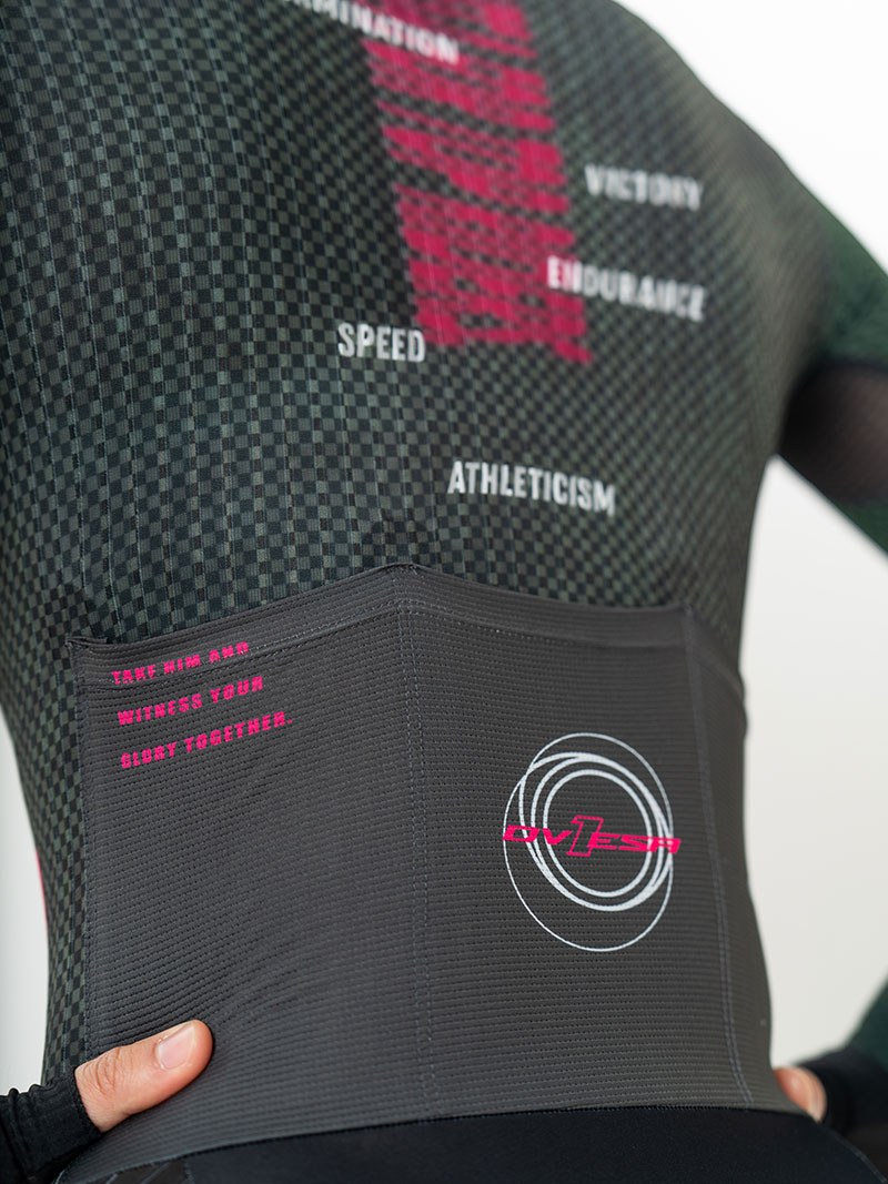 袖子后背侧片:意大利条纹压缩面料,具有超强的弹性及压缩性,优越的回弹性最大限度的突出面料功能。其部位突出的竖条纹结构,搭配更高效空气动力学剪裁,有效降低功率输出,符合空气流动性。极致气动。保证了车手在骑行中的绝佳表现,让您更快。