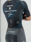 裤子:法国高性能科技面料,卓越的贴合度和舒适感,超强的压缩性提升支撑效果,搭配意大利条纹压缩面料,在保证腿部包裹感的同时,使得整体更加气动,并符合空气流动性,从而减少风阻。给运动中肌肉带来辅助效果,缓解疲劳。从而实现高效。