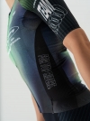 袖子:意大利条纹压缩面料,具有超强的弹性及压缩性,优越的回弹性最大限度的突出面料功能。其部位突出的竖条纹结构,搭配更高效空气动力学剪裁,有效降低功率输出,符合空气流动性。极致气动。保证了车手在骑行中的绝佳表现,让您更快。