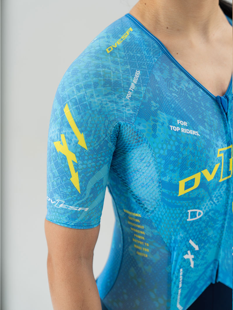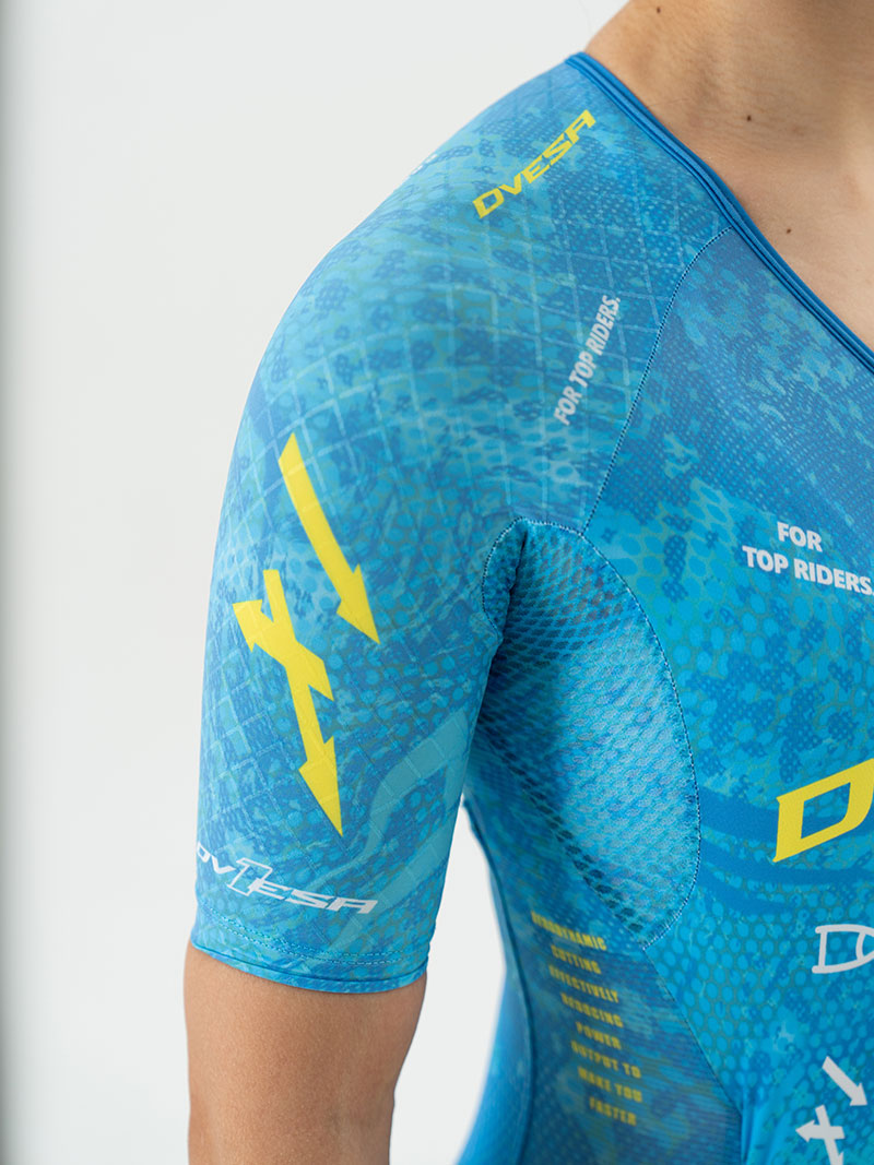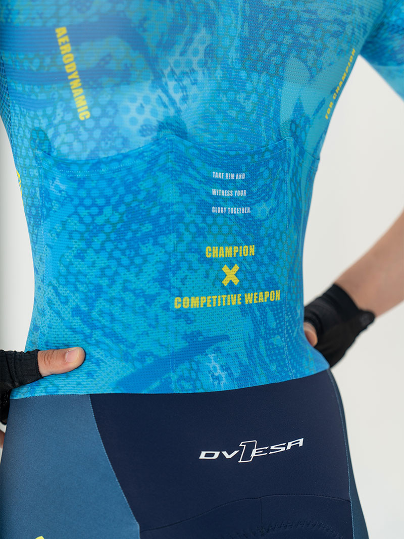 袖子:意大利进口梭织面料,其部位的菱形交叉纹路保证压缩性同时,增强了支撑性。高回弹延长面料功能。搭配更高效空气动力学剪裁,有效降低功率输出,符合空气流动性。更加气动。保证了车手在骑行中的绝佳表现,让您更快。