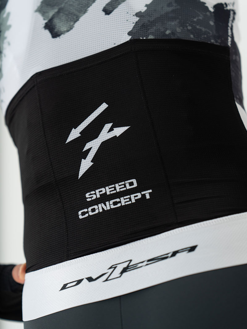 后背+侧片:意大利透气网眼,优越的吸湿排汗性,保证车手长距离训练过程中汗液排出,特殊面料的快干性加强了舒适度且不失压缩性能。