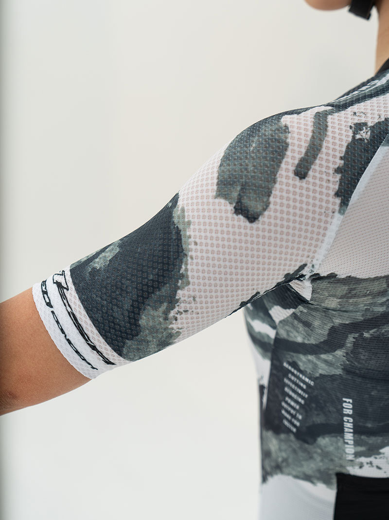 袖子:意大利经编3D网,四向伸展,优越的吸湿排汗性,轻质透气。保证车手长距离训练过程中汗液排出,特殊面料的快干性加强了舒适度且不失压缩性能。